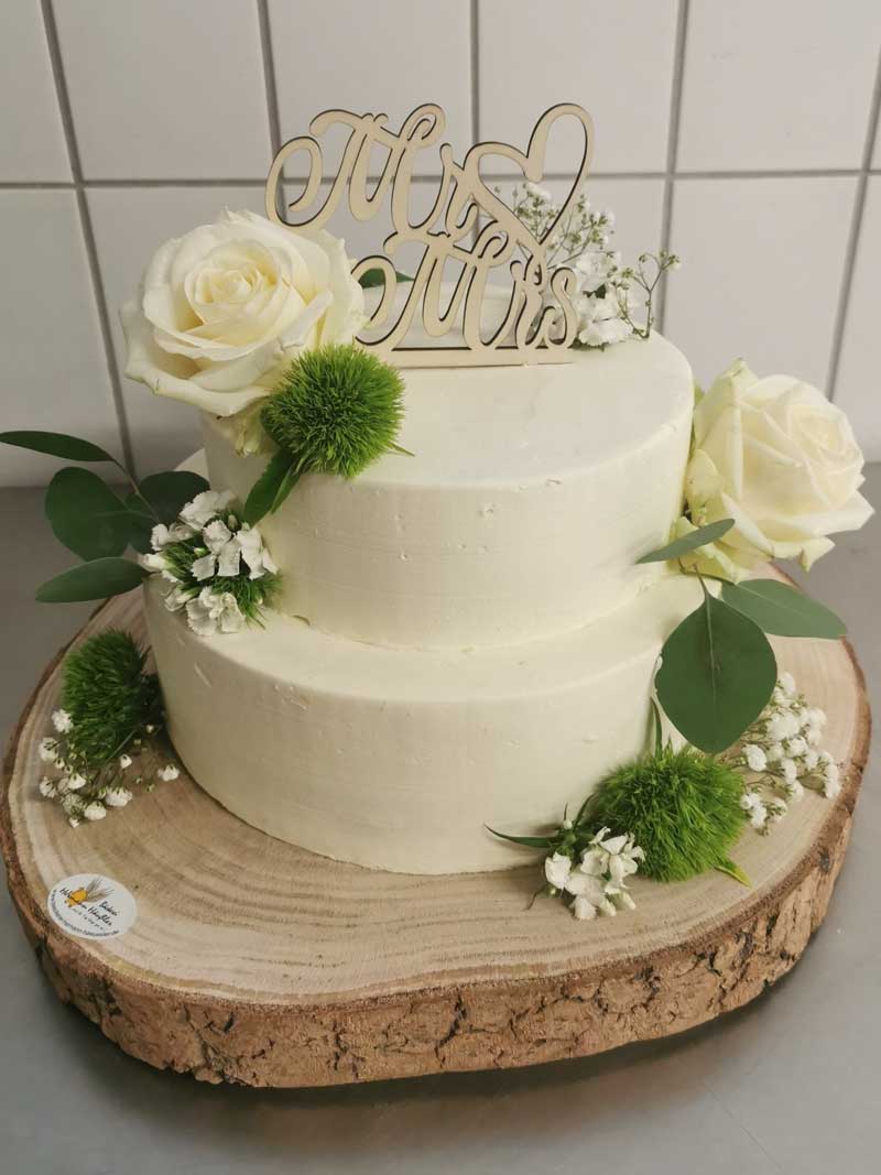 Jede Hochzeitstorte bei uns ist so individuell wie das Brautpaar selbst. So ist es auch mit dem Preis. Wir können dir pauschal nicht genau sagen was es am Ende kosten wird. Das hängt von Kriterien ab wie Geschmacksrichtungen bzw. Füllung, Personenanzahl, Dekoration und ob wir die Torte zu dir liefern oder sie bei uns abgeholt wird.